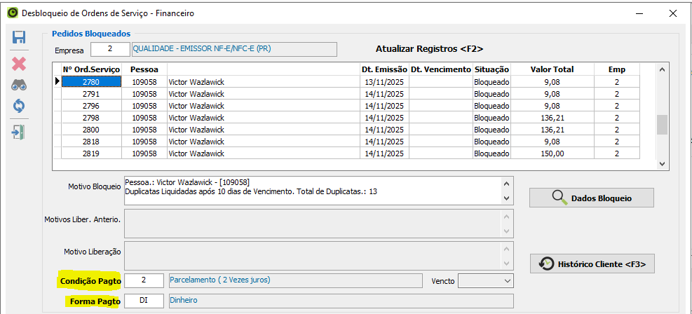 Agora é possível alterar ordens de serviço e pedidos bloqueados diretamente nas telas de desbloqueio, garantindo mais flexibilidade no controle financeiro.