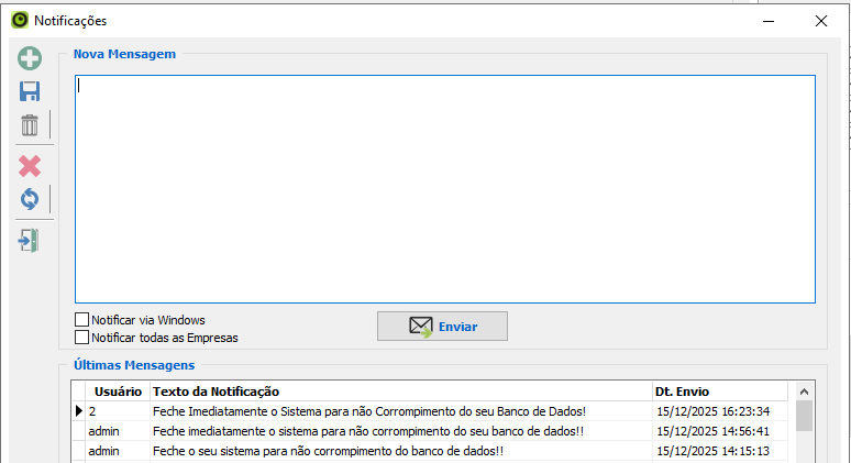 Chegou a nova tela de Notificações. Agora, você dispara alertas e avisos internos diretamente para todos os usuários logados.